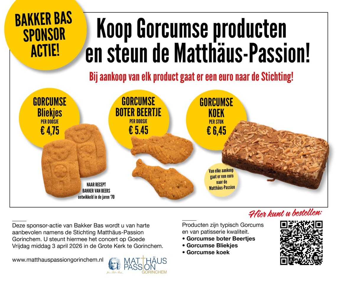 Koop een van de Gorkumse Bakker Bas producten en steun hiermee het concert op Goede vrijdagmiddag 3 april in de Grote kerk te Gorinchem